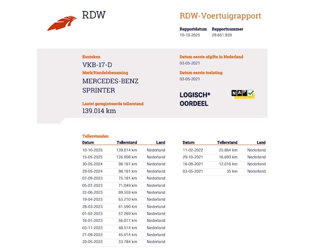 Kilometerstand gecontroleerd