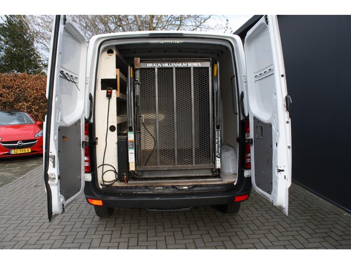 Laadlift zeer geschikt voor pakketjes en goederen in en uit te laden. Degelijk, solide en technisch hoogstaand: dat kun je van Duitse auto's nog altijd zeggen. En die omschrijving geldt zeker voor deze Mercedes-Benz Sprinter. Veel auto, veel kwaliteit. De aandrijving van deze Mercedes-Benz wordt verzorgd door een viercilinder dieselmotor en een handgeschakelde vijfversnellingsbak. Een prettige maar ook veilige extra is de schuifdeur voor passagiers. Ruim instappen, geen openslaande portieren die voor ongelukken zorgen... Een riante optie!