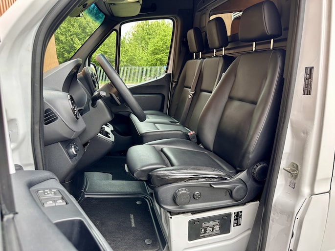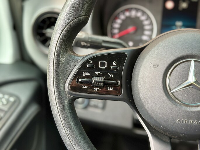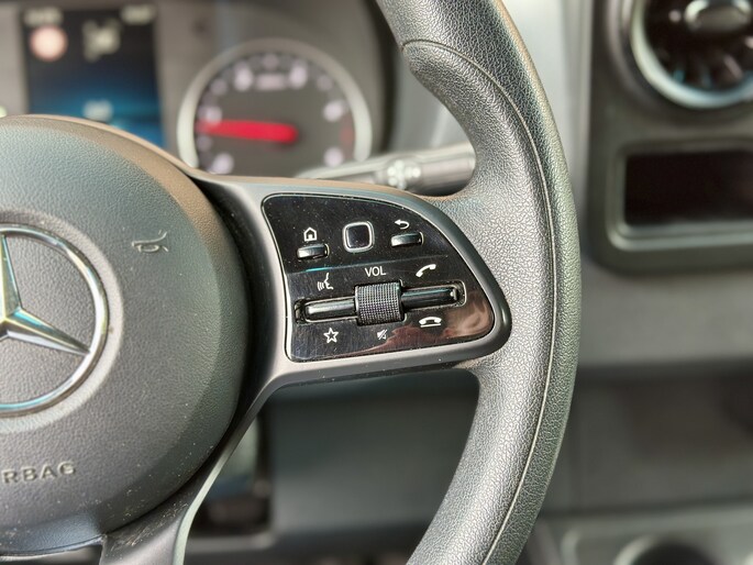 Zoals u mag verwachten van deze Mercedes-Benz Sprinter is hij uitgerust met een reeks aan actieve veiligheidssystemen. Belangrijk voor uw veiligheid en die van uw passagiers is de verkeersbord-detectie in deze auto. Een belangrijke bijdrage aan de veiligheid in deze auto is de vermoeidheidsherkenning, die waarneemt wanneer de bestuurder tekenen van vermoeidheid vertoont. De auto is ook uitgerust met dodehoekdetectie en bandenspanningcontrolesysteem.