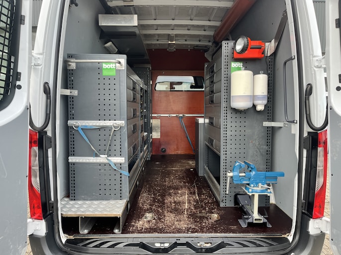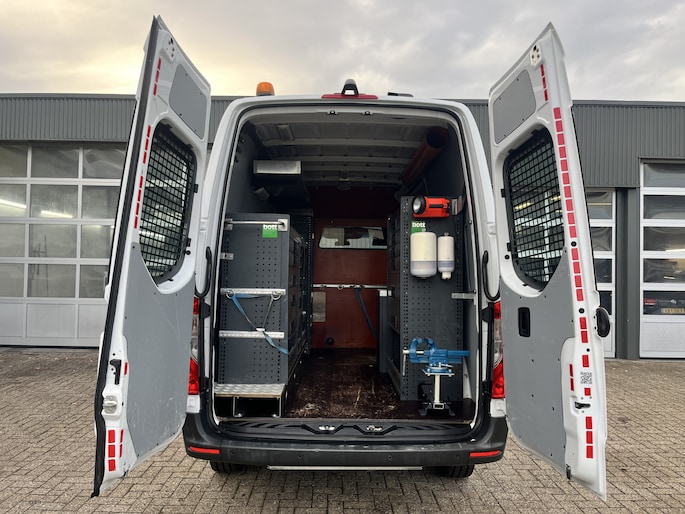 Een zeer nette Mercedes Sprinter 314 2.2 CDI 140pk L2H2 366wielbasis Met Werkplaats inrichting ideaal voor Servicewagen Servicemonteur Airco Cruise controle Trekhaak 2800kg Trekgewicht Kastinrichting Omvormer Apple carplay 360*Camera 1e Eigenaar Euro 6 Bpm vrij voor particulier gebruik!!
