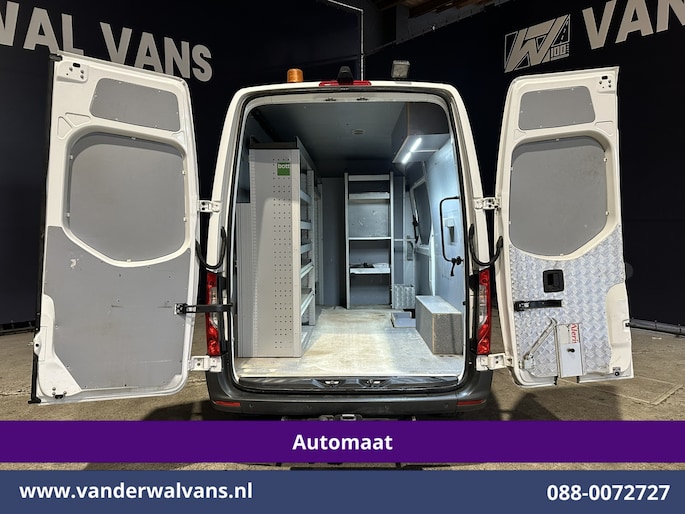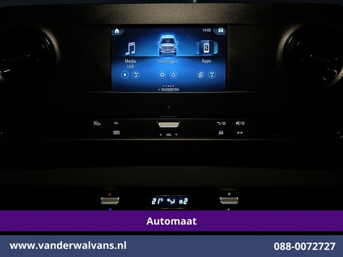 170pk sterke Sprinter L2H2 9G-Tronic Automaat Euro6 met camera en inrichting. Deze sprinter is uitgevoerd met airconditioning, Apple Carplay, Android Auto, cruisecontrol, parkeersensoren, 3500kg trekvermogen en bluetooth telefoonvoorbereiding.