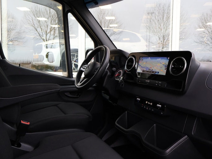 Sprinter 319 CDI 3.0 V6 190 PK Automaat L3H2, Selenietgrijs metallic met 18 inch hoogglans zwarte velgen met Continental banden (nieuw). Euro 6d-TEMP emissieklasse. Breedbeeld MBUX Navigatie, Trekhaak met 3500 kg trekgewicht op kenteken (trekhaakkogel ligt los in de auto), 3 zitplaatsen, Achteruitrijcamera met aparte trekhaak modus, Zonneklep / zonnespoiler boven de voorruit, Bumpers en buitenspiegels in carrosseriekleur meegespoten, Bluetooth telefoon met audiostreaming, Elektronisch verwarmbare voorruit, Airco met digitaal display, Cruise control, Multifunctioneel stuurwiel, Houten laadvloer, Aftimmering wielkasten, Complete wandbescherming, Elektrisch inklapbare buitenspiegels, Dodehoek assistentie, Afmetingen laadruimte: 430 cm laadlengte, 177 cm breedte, 197 cm hoogte. Prijs is exclusief BTW.