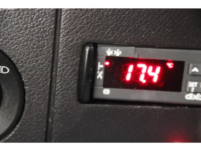 De Mercedes-Benz koelwagen is voorzien van airco, navigatiesysteem en achteruitrijcamera.
