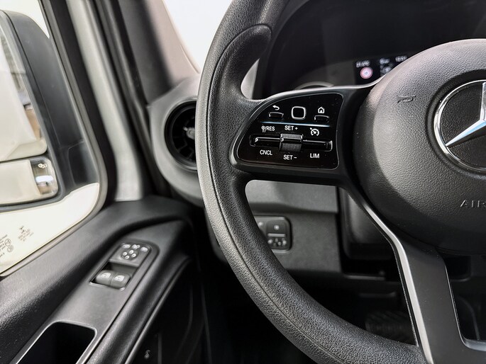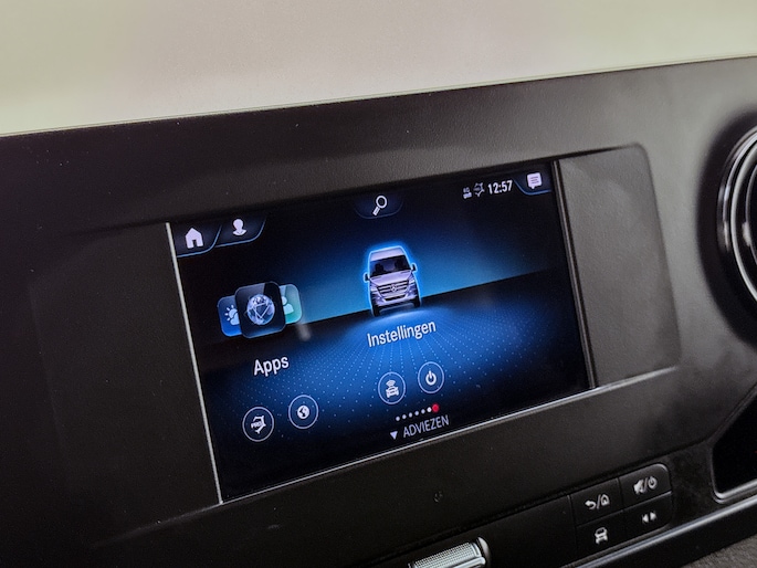 Zoals je mag verwachten van deze Mercedes-Benz Sprinter is hij uitgerust met een reeks aan actieve veiligheidssystemen. In het instrumentarium laat de verkeersborddetectie de actuele verkeersborden zien. Een belangrijk veiligheidssysteem in deze auto is de vermoeidheidsherkenning, die je een duidelijk signaal geeft wanneer je achter het stuur in slaap dreigt te vallen. Ook helpen het dodehoekdetectie, hill hold functie en bandenspanningcontrolesysteem, jouw rit tot een veilige rit te maken.