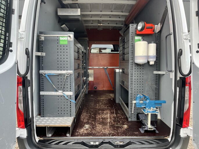 Een zeer nette Mercedes Sprinter 314 2.2 CDI 140pk L2H2 366wielbasis Met Werkplaats inrichting ideaal voor Servicewagen Servicemonteur Airco Cruise controle Trekhaak 2800kg Trekgewicht Kastinrichting Omvormer Apple carplay 360*Camera 1e Eigenaar Euro 6 Bpm vrij voor particulier gebruik!!