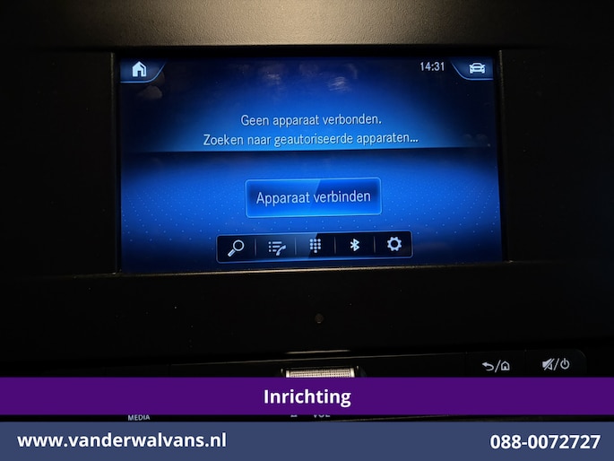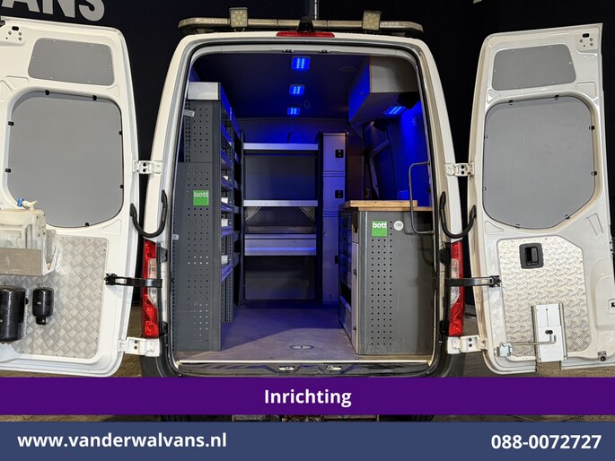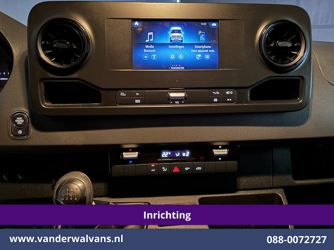 164pk sterke Sprinter L2H2 Euro6 met airconditioning, inrichting en 3500kg trekhaak. Dealer onderhouden en voorzien van omvormer, camera, Apple Carplay, Android Auto, cruisecontrol, parkeersensoren en bluetooth telefoonvoorbereiding.