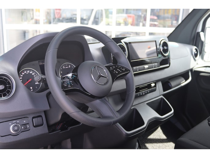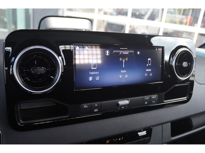 De Sprinter is o.a. voorzien van airco, 10.25" MBUX multimediasysteem,Carplay, achteruitrijcamera, cruise control, trekhaak 3500 kg etc.