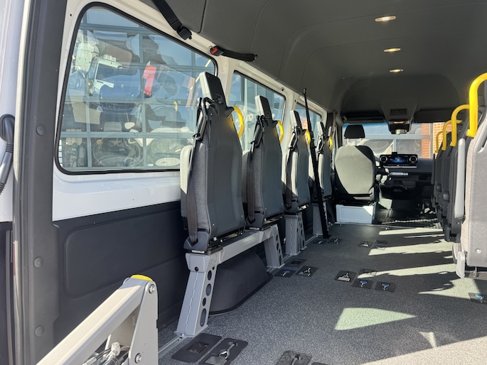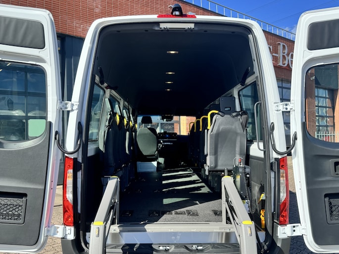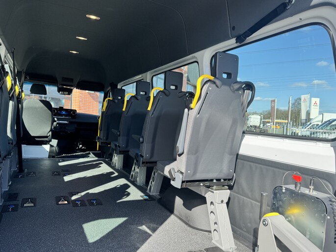 Deze eSprinter beschikt over de innovatieve 5e generatie B-FIT5 vloer met ruimte voor 4 rolstoelplaatsen.