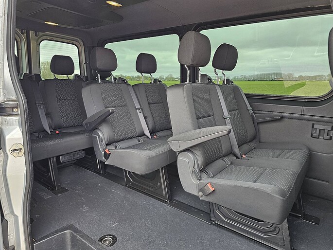 Configuratie: 4x2, Eigen gewicht: 2588 kg, Totaalgewicht: 3500 kg, Cruise control, Airconditioning, Aantal airbags: 2, Parkeerhulp: Voor en achterkant, Getint glas, Elektrische ramen, Elektrische spiegels, Radio/cassette, Carplay, GPS navigatie, Kleur: Zilver, Metallic, Achteruitrij camera, Soort lampen: Halogeen, Laneassist, Climatecontrol, Stoelverwarming, Bluetooth, Dodehoek detectie, Motorvermogen: 120 Kw (161 Hp), Brandstof: diesel, Euro: 6, Distributie type: Distributieketting, Soort versnellingsbak: Automaat, Stuurbekrachtiging, ABS (Anti Blokkeer Systeem), ASR (Anti Slip Regeling), Start accu, Opbouw model: L3H3 – Lange wielbasis, hoog dak, Imperiaal: Geen, Zijdeuren: 1, Zijruiten: 4, Achtersluiting: dubbele deur, Centrale vergrendeling, Zitplaatsen: 9, Stoelopstelling: 2+2+2+3, Stoelbekleding: stof, Stoel verstelling: Handmatig, L2H1 9 Persoons Tourer Automaat Navi Adaptieve Cruise Mbux10 Lane Assist Camera PDC Euro6 163 PK!, Banden soort: Winterbanden