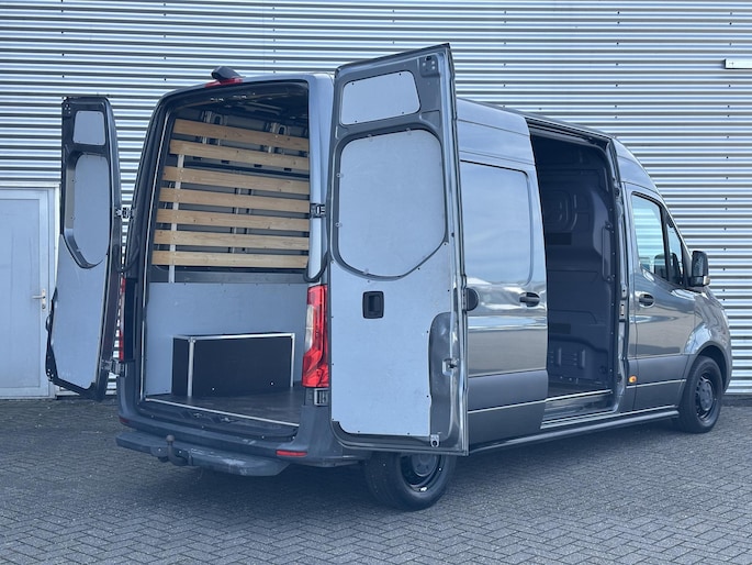 Van de 1ste eigenaar en nieuw bij ons gekocht: Sprinter 214 CDI bestelwagen Lang-Hoog L2H2 fwd, uit 2021 en slechts 80000km gereden in de kleur Selenietgrijs metallic, voorzien van oa: Luxe bestuurdersstoel, bijrijdersbank, cruisecontrol, met leer bekleed stuurwiel, origineel fabrieks alarm, MBUX multimedia systeem, met bluetooth carkit, full map navigatiesteem, apple carplay, Achteruitrij camera,sidebars, complete betimmering van de laadruimte etc etc