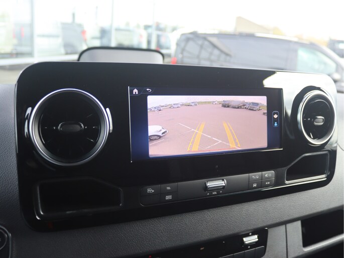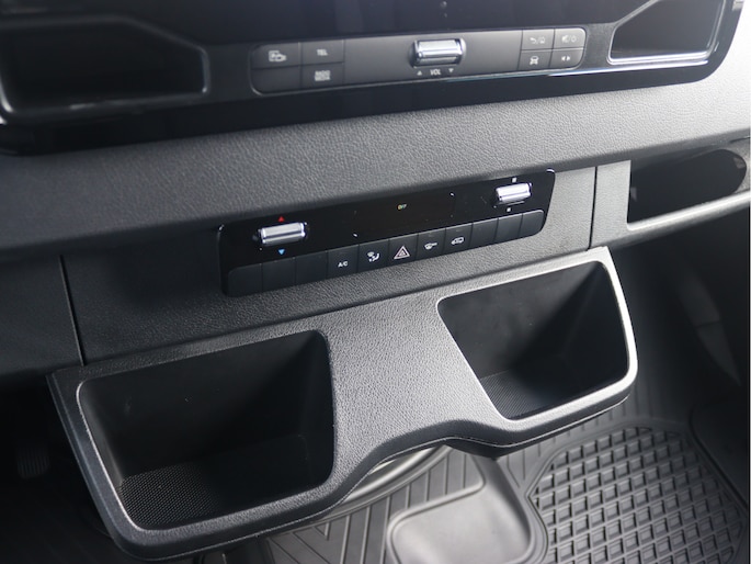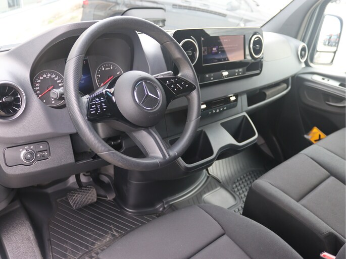 De Sprinter is o.a. voorzien van airco, schuifdeur links en rechts, 10,25" MBUX multimediasysteem met Apple CarPlay en Android Auto, achteruitrijcamera, volledige laadruimte betimmering, voorbereiding voor 3.500 kg AHW-gewicht en cruise control.