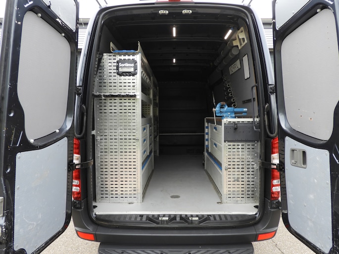 Zeer nette en complete Mercedes-Benz Sprinter 314 CDI L2H2 automaat met trekhaak, imperiaal en volledig Sortimo ingerichte laadruimte. Is eventueel zeer geschikt voor ombouw naar camper of bus voor cross. Nederlands geleverde auto, afkomstig van eerste eigenaar en volledig dealer onderhouden!