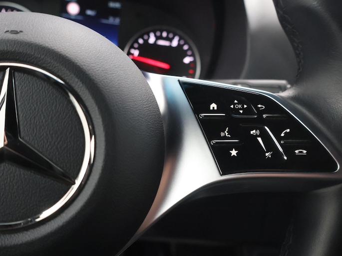 Onder alle omstandigheden perfect zicht op wat zich achter de auto afspeelt: de achteruitrijcamera zorgt ervoor! De speciale app verbindt met Connected Services, die de status van vitale functies bijhoudt en waarschuwt als u bijvoorbeeld moet tanken, de bandenspanning moet controleren of olie moet bijvullen. Een belangrijke veiligheidsvoorziening is de bediening van het audiosysteem via knoppen op het stuur. Dab-ontvangst geeft daarbij een kraakheldere ontvangst. In deze Mercedes-Benz kunt u zich concentreren op het verkeer, terwijl de auto de omgeving voor u in de gaten houdt. Een automatisch inschakelbare verlichting zorgt dat de verlichting aangaat als het donkerder wordt - in tunnels bijvoorbeeld - en de regensensor schakelt de ruitenwissers in als het nodig is. U hoeft er niets aan te doen. Cruise control verlaagt de brandstofkosten en verhoogt het rijcomfort. De uitrusting van deze Mercedes-Benz is met airconditioning, buitentemperatuurmeter en verstelbaar stuur behoorlijk compleet.