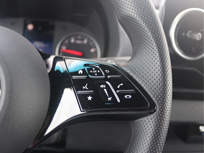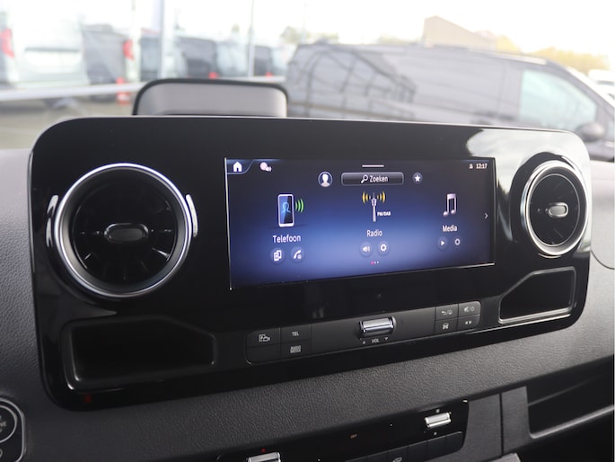 De Sprinter is o.a. voorzien van airco, schuifdeur links en rechts, 10,25" MBUX multimediasysteem met Apple CarPlay en Android Auto, achteruitrijcamera, volledige laadruimte betimmering, voorbereiding voor 3.500 kg AHW-gewicht en cruise control.