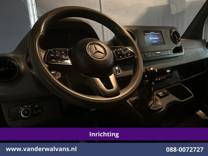 164pk sterke Sprinter L2H2 Euro6 met airconditioning, inrichting en 3500kg trekhaak. Geheel dealer onderhouden en tevens voorzien van camera, Apple Carplay, Android Auto, cruisecontrol, parkeersensoren en bluetooth telefoonvoorbereiding.