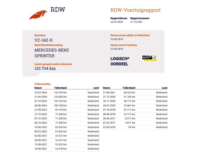 Kilometerstand gecontroleerd