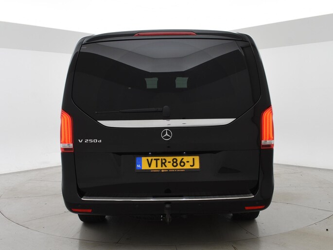 V-klasse lang 250d 190 PK Automaat dubbel cabine met 5 zitplaatsen, Zwart met zwart leder interieur, Avantgarde uitvoering, Euro 6 emissienorm, Panorama schuifdak, Burmester premium sound, Elektrisch zijschuifdeuren, Distronic+ adaptive cruise control, Full LED koplampen, LED achterlichten, Privacy glass, Leder dashboard, 19 inch lichtmetalen velgen, Rode remklauwen, Achteruitrijcamera, Dodehoek assistent, Navigatie, Lijnassistentie, Bluetooth met audiostreaming, Dakrailing, Elektrische achterklep, Trekhaak met 2000 kg trekgewicht, Stoelverwarming, Climate control met aparte display / bediening achterin, Afstandswaarschuwing, Sfeerverlichting interieur met verschillende kleuren, Agility Select regelbare rij-eigenschappen, Prijs is exclusief BTW.