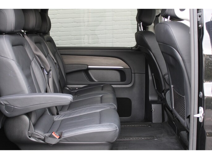 Voor deze Mercedes-Benz V-klasse moet u snel zijn, want die gaat aandacht krijgen. Net binnen, maar daar blijft-ie niet lang! Een viercilinder dieselmotor en een automatische transmissie zorgen voor de uitstekende prestaties van deze auto. De leren bekleding is niet alleen mooi om te zien, maar zorgt ook voor comfort en een rijke uitstraling. Ga samen met uw bijrijder lekker zitten in de verwarmbare voorstoelen. De bagageruimte is toegankelijk via een comfortverhogende elektrische achterklep. Opwarmen in koude dagen? Pak het verwarmd stuurwiel met beide handen aan! Xenonverlichting zorgt voor een heldere witblauwe lichtkleur en een scherp lichtbeeld. Achterportieren kunnen gemakkelijk beschadigd raken als ze bijvoorbeeld door de wind bij uitstappen openslaan. Dat zal niet gebeuren met de aanwezige schuifdeur achter. Ook is de auto voorzien van: LED koplampen, sportonderstel, adaptief dempingsysteem, warmtewerend glas, LED-achterlichten en verwarmde ruitensproeiers.