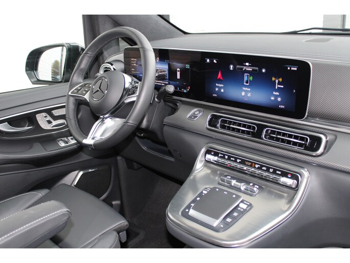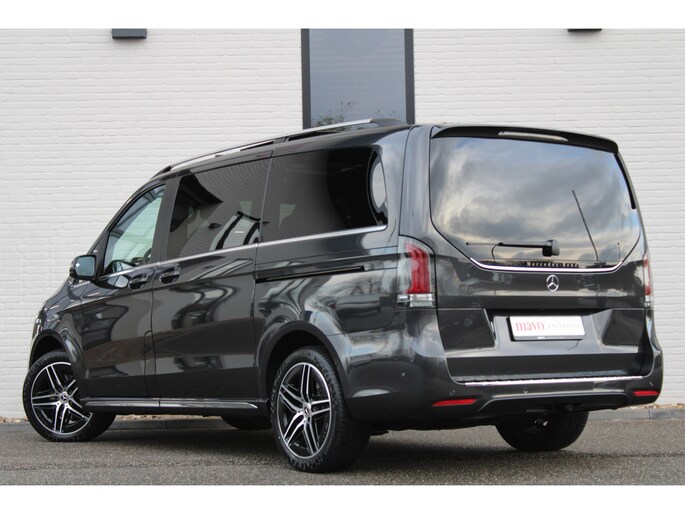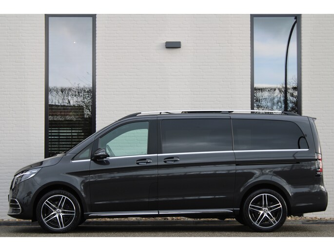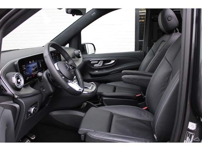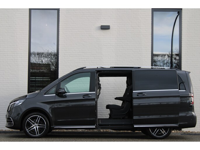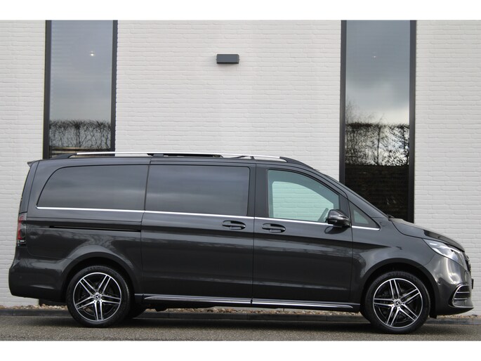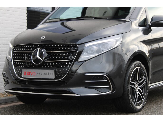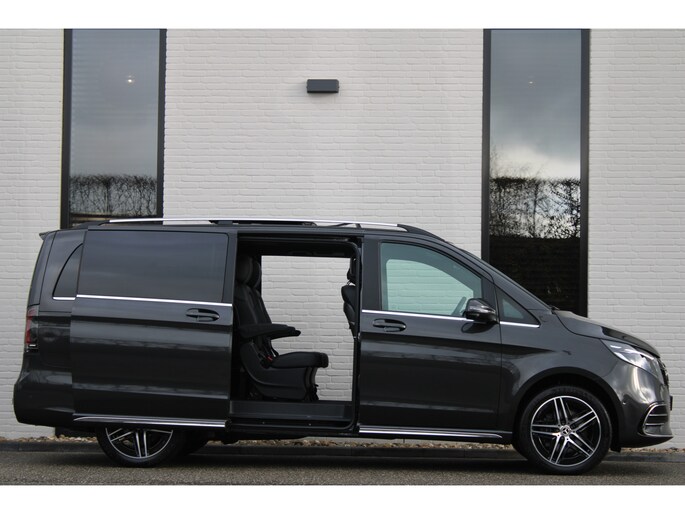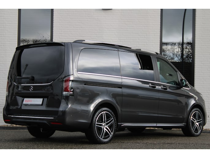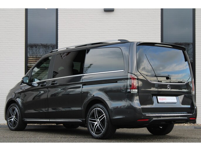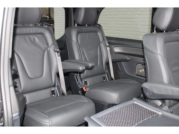 De vooruitstrevende techniek van deze Mercedes-Benz V-klasse vormt een harmonieuze eenheid met de stijlvolle vormgeving. Het comfort en de veiligheid staan bovendien op hoog niveau, zoals dat hoort bij een auto van een gerenommeerd Duits merk. Met de AMG-sportpakket trekt u op een positieve manier de aandacht. In deze auto vindt u een dieselmotor en een automatische transmissie. Deze Mercedes-Benz is voorzien van een mooie en comfortabele lederen bekleding. Neem plaats op de comfortabele stoelen. Dankzij de elektrische bediening en het geheugen is het eenvoudig om hierin de beste zitpositie te vinden. Met een druk op de knop gaat de elektrische achterklep open. Vergezichten krijgen een extra dimensie door het glazen panoramadak. Een heerlijk luxe optie van deze auto is het verwarmbare stuurwiel. Xenonverlichting zorgt voor een heldere witblauwe lichtkleur en een scherp lichtbeeld. Tot de uitrusting behoren ook 19 inch lichtmetalen velgen, LED koplampen, AMG-sportpakket, sportonderstel, elektrische schuifdeur en adaptief dempingsysteem.