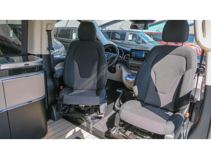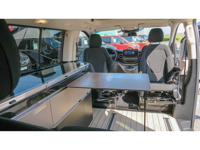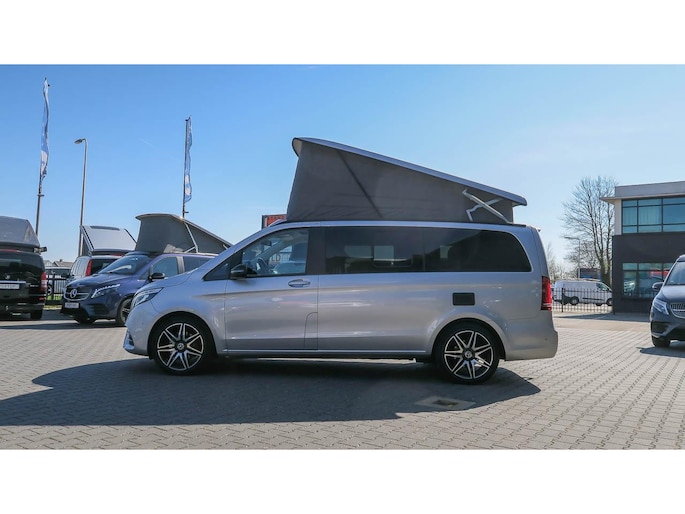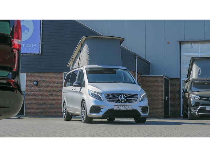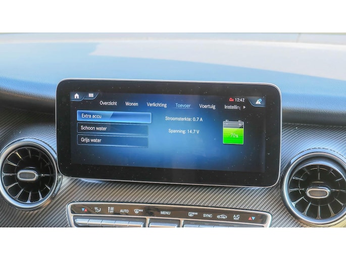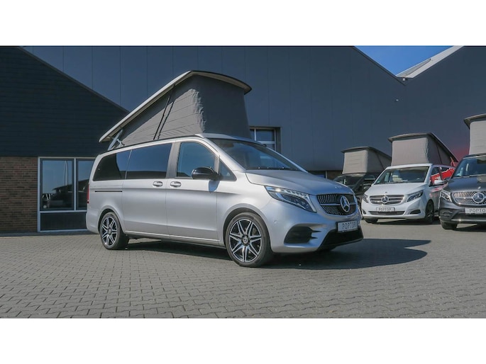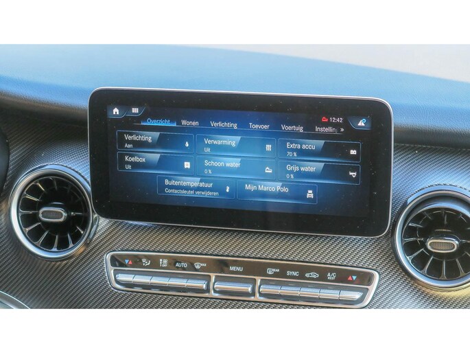 Mooi complete Marco Polo met het Mbux Mbac besturingssyteem voor auto en camper, en sportief door het AMG styling pakket wat prima oogt bij de Brilliant Silber metallic lak.
