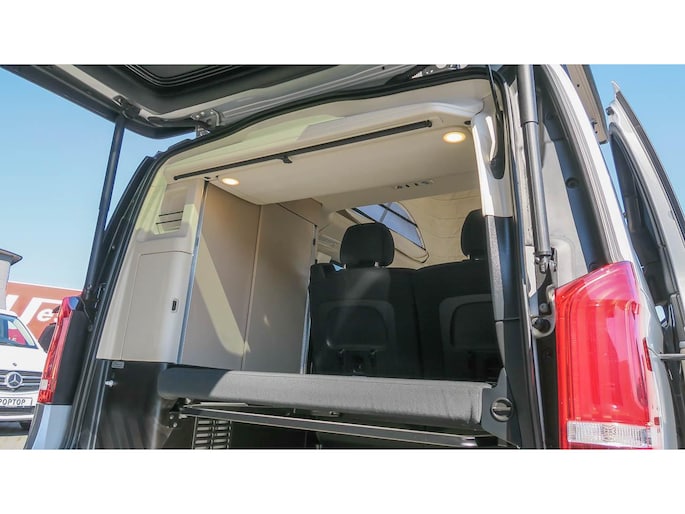 Deze fraaie V-klasse is hoofdzakelijk als mobiel kantoor/reiswagen gebruikt. Nauwelijks in gekampeerd dus en doordat deze zakelijk is gereden is de BTW nog aftrekbaar.