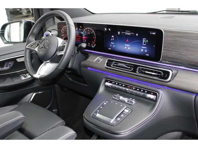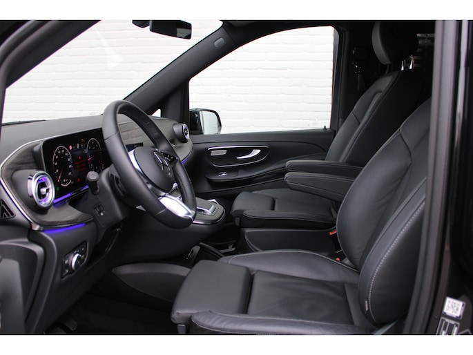 Deze jongvolwassen Mercedes-Benz V-klasse met de nieuwste technologie aan boord is net lekker voor u ingereden. De krachtige dieselmotor van deze auto is gekoppeld aan een automatische transmissie. Houdt u van een luxe uitstraling? Dan is het lederen interieur een heel aantrekkelijke extra! Doe maar luxe! Neem plaats in de verwarmbare voorstoelen en voel de weldaad in koude dagen. De elektrisch bedienbare achterklep opent met een druk op de knop. Natuurlijk kunt u zonder. Maar waarom? Lekker toch, zo'n verwarmd stuurwiel? Met de krachtige xenonverlichting rijdt u ontspannen in het donker. De lekker grote deuropening van de schuifdeur aan passagierszijde zorgt voor een heerlijk ruime instap. Bij de uitrusting van deze auto horen onder meer LED koplampen, sportonderstel, adaptief dempingsysteem, warmtewerend glas, zwarte hemelbekleding en LED-achterlichten.