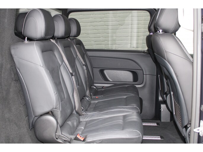 Deze Mercedes-Benz V-klasse bewijst haar klasse met een elegant uiterlijk en een comfortabele binnenruimte, onmiskenbaar een kwaliteitsauto uit Duitsland. De krachtige dieselmotor van deze auto is gekoppeld aan een automatische transmissie. Het stijlvolle lederen interieur geeft deze Mercedes-Benz V-klasse net dat beetje extra. 's Winters op pad gaan kan een behoorlijke uitdaging zijn. Daarom is deze Mercedes-Benz V-klasse voorzien van weldadige verwarmbare voorstoelen. De elektrische achterklep opent met een druk op de knop, zodat u gemakkelijk toegang heeft tot de bagageruimte. Met de krachtige xenonverlichting heeft u optimaal zicht in het donker. Aan alles is gedacht als het gaat om de combinatie gemak en veiligheid. Bijvoorbeeld het in- en uitstappen via de schuifdeur met z'n ruime opening. Tot de voorzieningen van deze auto behoren LED koplampen, CF8 sportonderstel, adaptief dempingsysteem, warmtewerend glas, LED-achterlichten en verwarmde ruitensproeiers.