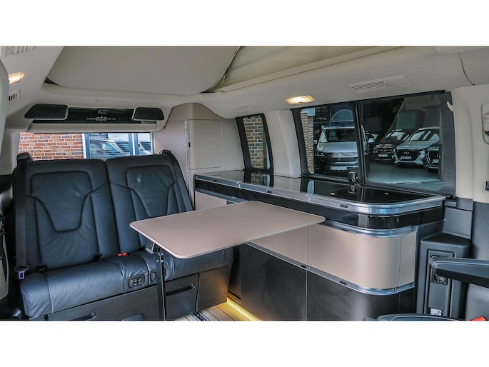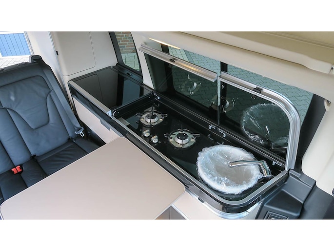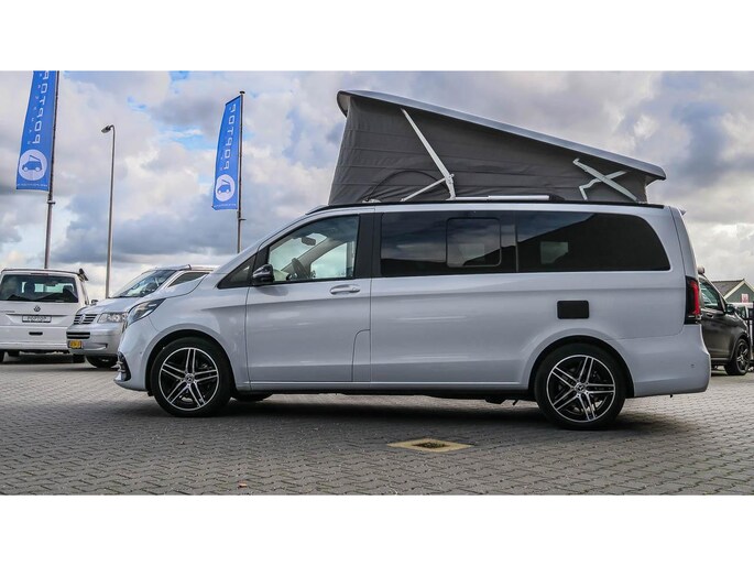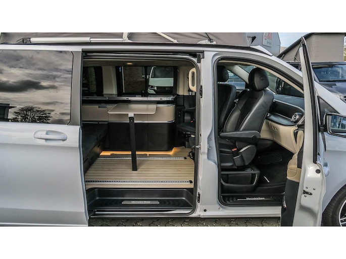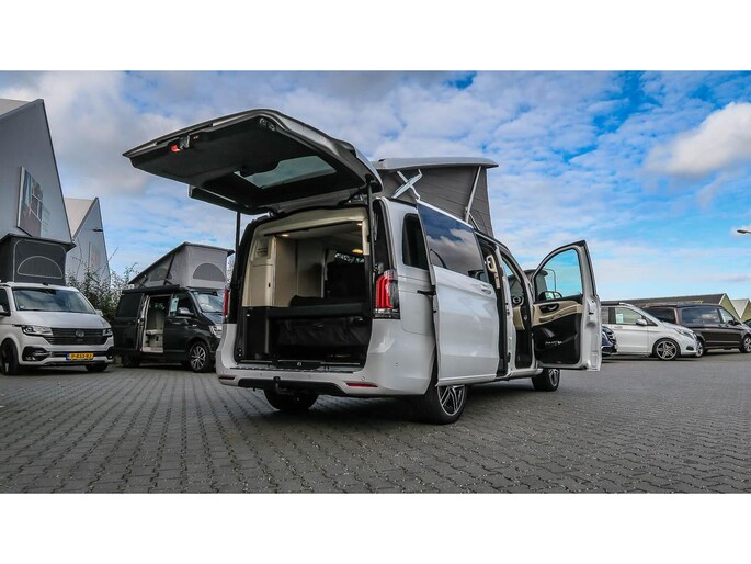 Prachtig uitgevoerde Marco Polo van de laatste generatie. Samengesteld als demovoertuig voor een Mercedes-benz dus eigenlijk met alle denkbare opties uitgevoerd. Zo is de ‘Airmatic’ luchtvering niet alleen heerlijk voor het weggedrag en aanpassing van de wagenhoogte tijdens rijden, maar ook voorzien van het Camper level control systeem waarmee met een druk op de knop de auto waterpas is te stellen.