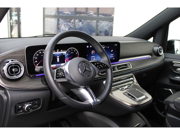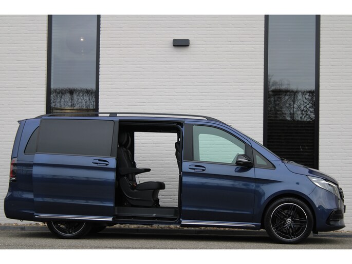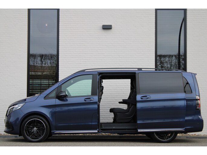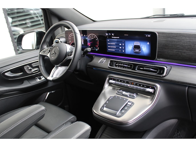 Mercedes-rijders houden niet van compromissen, stellen hoge eisen aan techniek, comfort en prestaties. 'The best or nothing', is de kreet. En dat merk je aan deze V-klasse. De AMG-styling van deze auto is zowel smaakmakend als spraakmakend. Deze auto uit 2024 heeft nauwelijks gereden, met een tellerstand van slechts 10946 kilometer. De krachtige benzinemotor van deze auto is gekoppeld aan een automatische transmissie. En wat heeft deze auto nog meer in petto? Om te beginnen zien we het lederen interieur, dat een sfeer van luxe meebrengt. Maar als u gaat voor gemak, wordt u ook niet teleurgesteld. Kijk eens naar die elektrisch bedienbare achterklep! Neem plaats op de comfortabele stoelen. Dankzij de elektrische bediening en het geheugen is het eenvoudig om hierin de beste zitpositie te vinden. Als autorijden zijdezacht kan zijn, dan is het hier zeker het geval: daar zorgen de de luchtvering en de comfortstoelen voor. Een heerlijk luxe optie van deze auto is het verwarmbare stuurwiel. Een openzwaaiend portier kan flink wat wind vangen, met gevaarlijke gevolgen. Dat zal niet gebeuren met de handige, ruime schuifdeur. Bij de zeer complete uitrusting van deze auto behoren ook 19 inch lichtmetalen velgen, AMG-styling, sportonderstel, LED-koplampen, adaptief dempingsysteem en warmtewerend glas.