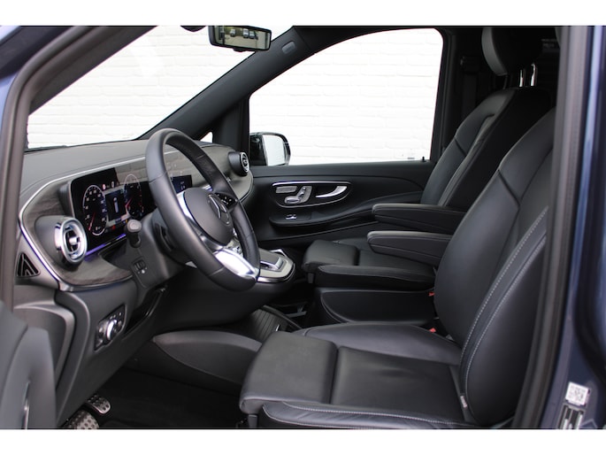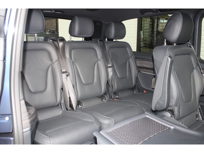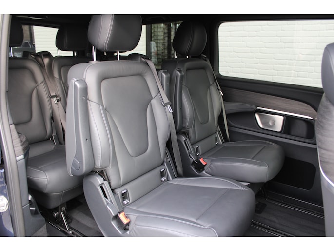 Met zijn ruimte en zijn prestaties is dit de auto die bij u past. Deze Mercedes-Benz V-klasse heeft 10946 kilometer gelopen. AMG-styling vertegenwoordigt de overtreffende trap in smaakvolle sportiviteit. Een krachtige motor geeft deze auto zijn sportieve prestaties. Kijk, dat noemen we nou stijlvol: een fraai lederen interieur. Gecombineerd met het heerlijke gemak van de elektrisch bedienbare achterklep. U past de stoelen moeiteloos aan, ze zijn elektrisch in te stellen en hebben bovendien een geheugen. Constante rijhoogte, optimaal comfort, perfecte wegligging... de luchtvering zorgt ervoor! De comfortstoelen doen er nog een schepje bovenop. Comfortabel houvast krijgt u van het verwarmd stuurwiel. Het passagiersgedeelte van deze personenauto is voorzien van een schuifdeur. Dat betekent een royale instap zonder openslaande portieren! Tot de uitrusting behoren ook 19 inch lichtmetalen velgen, AMG-styling, sportonderstel, LED-koplampen, adaptief dempingsysteem en warmtewerend glas.