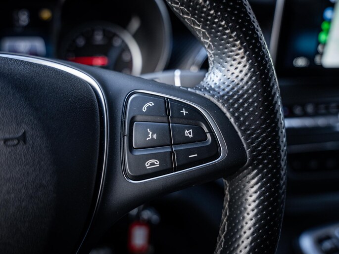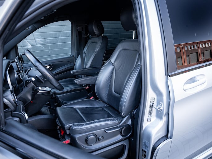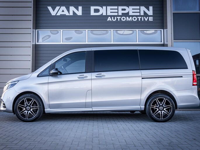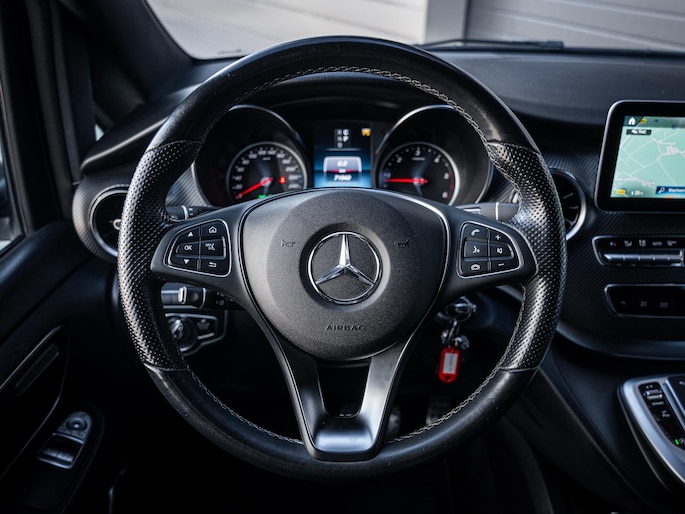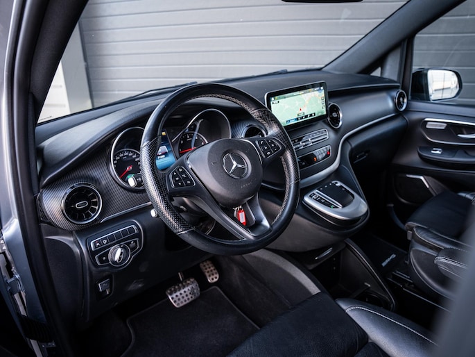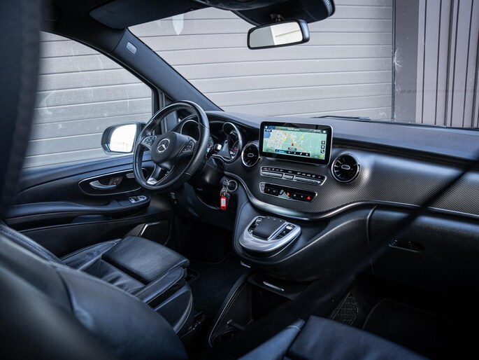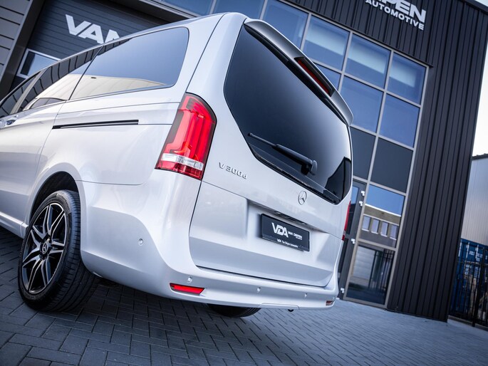 Aan uitrusting geen gebrek. Deze V-Klasse is onder andere voorzien van stoelverwarming, het High Performance LED verlichtingssysteem, cruise control, Apple CarPlay en Android Auto, een 360 graden camera, het hoogwaardige Burmester audiosysteem en elektrisch bedienbare schuifdeuren. De fraaie 19 inch lichtmetalen velgen maken het geheel compleet.