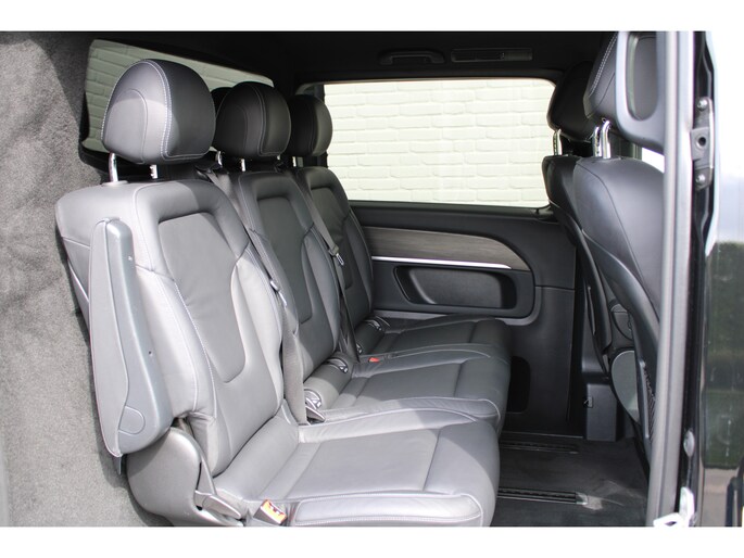 U zoekt een betrouwbare auto met uitstekende rijkwaliteiten? Dan is deze Mercedes-Benz V-klasse een geweldige keuze! De krachtige dieselmotor staat garant voor uitstekende prestaties. Met de elektrisch bedienbare achterklep kunt u handsfree bij de kofferruimte komen. En daarna prinsheerlijk plaatsnemen in het lederen interieur. Op zelfs de koudste ochtend biedt de stoelverwarming een heerlijk welkom. Ook in winterse omstandigheden is rijden een plezier, niet in de laatste plaats dankzij het verwarmd stuurwiel. Xenonverlichting zorgt voor een heldere witblauwe lichtkleur en een scherp lichtbeeld. De schuifdeur achter is fijn voor in- en uitstappen en de grotere ramen bieden veel meer uitzicht. Ook LED koplampen, sportonderstel, adaptief dempingsysteem, warmtewerend glas, zwarte hemelbekleding en LED-achterlichten zijn aan boord.