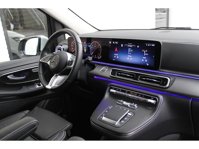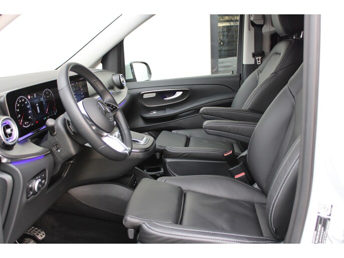 Noemt u eens een Duits B-merk? Kennen ze niet. Uitstekende auto's, al vele decennia lang. Dat geldt ook voor deze. Mag het een beetje exclusief en sportief? Mooi, want deze is uitgevoerd met AMG-sportpakket. De krachtige dieselmotor staat garant voor uitstekende prestaties. Met het lederen interieur ervaart u direct het gevoel van luxe en comfort. Een weldaad voor u en uw bijrijder: deze Mercedes-Benz V-klasse heeft verwarmbare voorstoelen. Onderweg zorgen de comfortstoelen voor een ontspannen rit. Met een druk op de knop gaat de elektrische achterklep open. Dankzij de xenonverlichting profiteert u in het donker van een krachtige en heldere lichtbundel. Openwaaiende portieren kunnen gevaar opleveren. Daarom is de schuifdeur voor passagiers extra handig en veilig. In deze auto profiteert u onder andere ook van: 19 inch lichtmetalen velgen, LED koplampen, AMG-sportpakket, sportonderstel, adaptief dempingsysteem en warmtewerend glas.