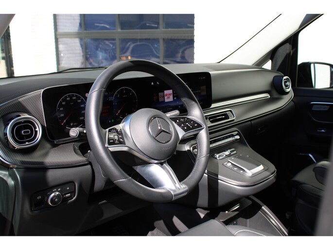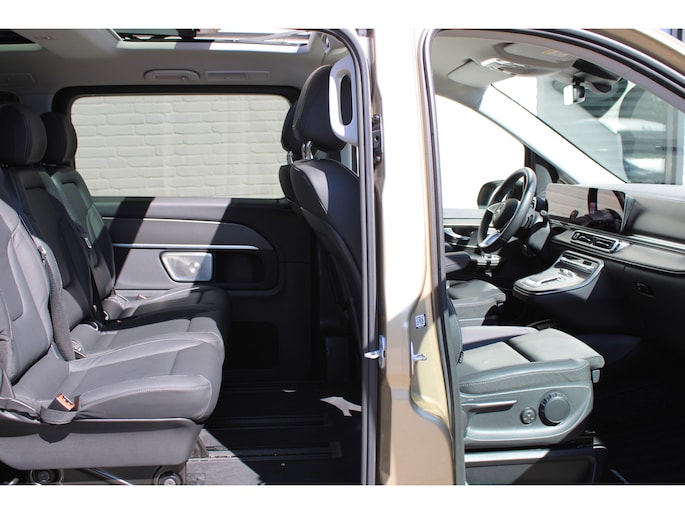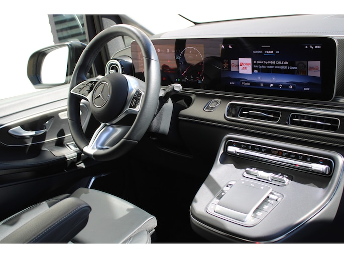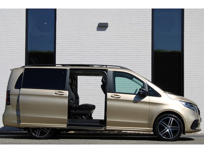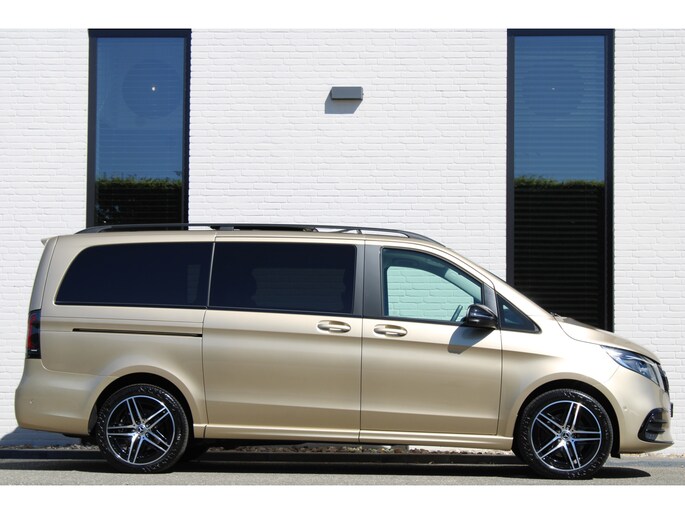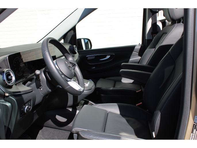 Auto's als deze Mercedes-Benz V-klasse bieden tegelijk rijdynamiek, comfort en degelijkheid. Exclusiviteit en sportiviteit komen samen in de AMG-sportpakket. Op de teller van deze auto staat slechts 6173 kilometer. Een viercilinder dieselmotor en een automatische transmissie zorgen voor de uitstekende prestaties van deze auto. U wilt comfort? Die is er, met het lederen interieur. U wilt gemak? Kijk dan even naar de elektrisch bedienbare achterklep. U zit er altijd warmpjes bij door de stoelverwarming. Onderweg heeft u extra veel te zien dankzij het glazen panoramadak. Als de 'r' in de maand zit, komt zo'n verwarmd stuurwiel als geroepen! Xenonverlichting staat borg voor helderwit licht en een krachtige lichtbundel. Een openzwaaiend portier kan flink wat wind vangen, met gevaarlijke gevolgen. Dat zal niet gebeuren met de handige, ruime schuifdeur. Ook 19 inch lichtmetalen velgen, LED koplampen, AMG-sportpakket, sportonderstel, adaptief dempingsysteem en warmtewerend glas horen tot de voorzieningen op deze auto.