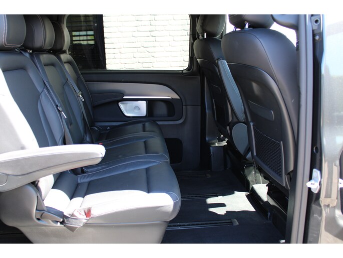 Van autorijden mag u best genieten. En dat gaat u ook, achter het stuur van deze Mercedes-Benz V-klasse, want dankzij de hoogwaardige technologie die in deze auto is verwerkt, is iedere kilometer een klein feestje. Het motorvermogen en de uitgebalanceerde wegligging zorgen dat u altijd in controle bent. Een aantrekkelijke en fraaie optie is de expressieve AMG-sportpakket. De auto heeft een opmerkelijk lage kilometerstand van slechts 13237 Deze diesel heeft een automatische transmissie. Dit mag je gerust een luxe uitvoering noemen: een lederen interieur én een elektrisch bedienbare achterklep! Er is stoelverwarming aanwezig in deze auto. Bij deze Mercedes-Benz V-klasse is aan alles gedacht, tot en met een verwarmd stuurwiel aan toe. Met de krachtige xenonverlichting heeft u optimaal zicht in het donker. De schuifdeur bij het passagiersdeel is ook een voordeel: geen uitzwaaiende portieren en een royale instap. Tot de voorzieningen van deze auto behoren 19 inch lichtmetalen velgen, LED koplampen, AMG-sportpakket, sportonderstel, adaptief dempingsysteem en warmtewerend glas.