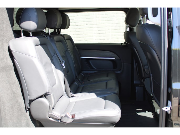 Model nu, design nu, kwaliteit nu, technologie nu. Een fijne jonge Mercedes-Benz V-klasse voor een occasionprijs. Met zijn dieselmotor en automatische transmissie is dit een prima auto voor nog vele kilometers. Niets geeft meer gevoel van luxe en comfort dan een lederen interieur. Ook dat is hier meegeleverd Lekker hoor, die verwarmbare voorstoelen. Helemaal op koude dagen. Een handige voorziening op deze auto is de elektrische achterklep die u op afstand kunt openen. Het verwarmbare stuurwiel is een teken van ultieme luxe. Deze voorziening is een topklasse auto waardig. Xenonverlichting staat borg voor helderwit licht en een krachtige lichtbundel. De schuifdeur achter is fijn voor in- en uitstappen en de grotere ramen bieden veel meer uitzicht. Tot de uitrusting van deze Mercedes-Benz behoren ook LED koplampen, sportonderstel, adaptief dempingsysteem, warmtewerend glas, LED-achterlichten en verwarmde ruitensproeiers.