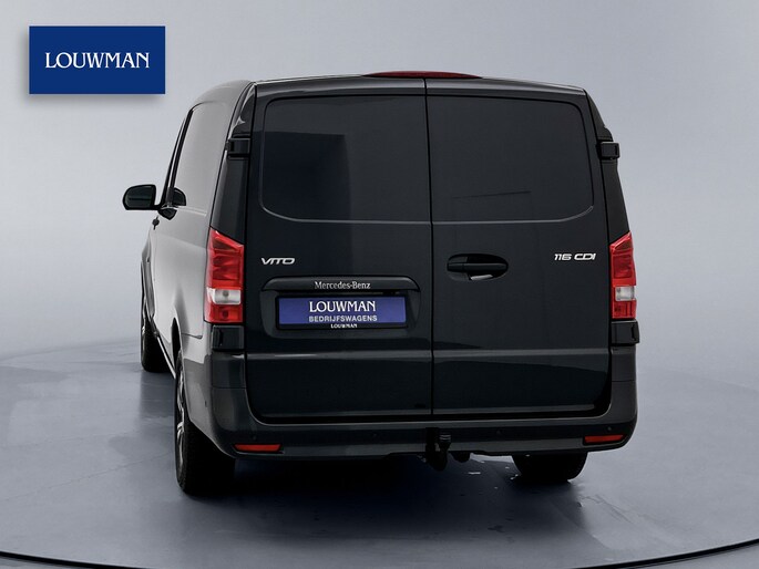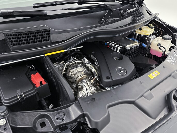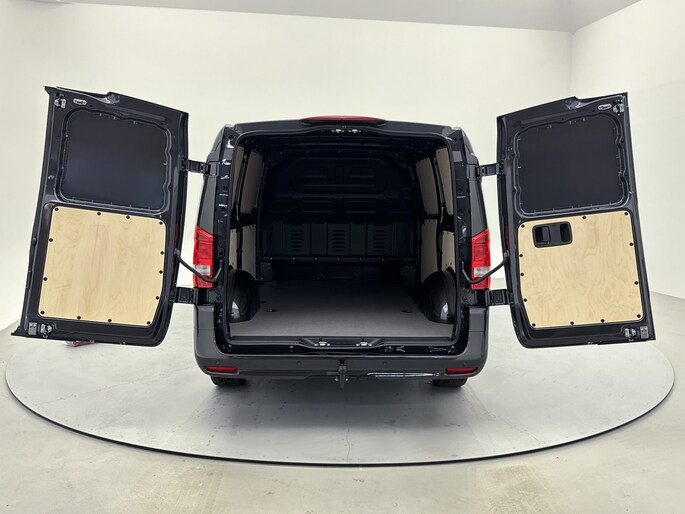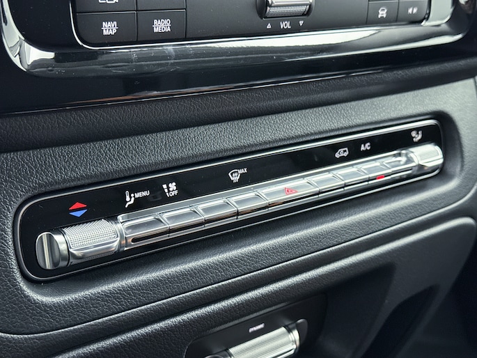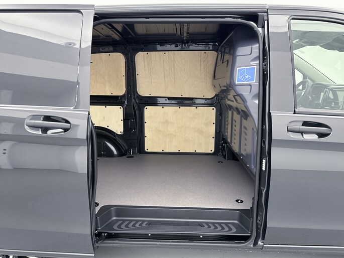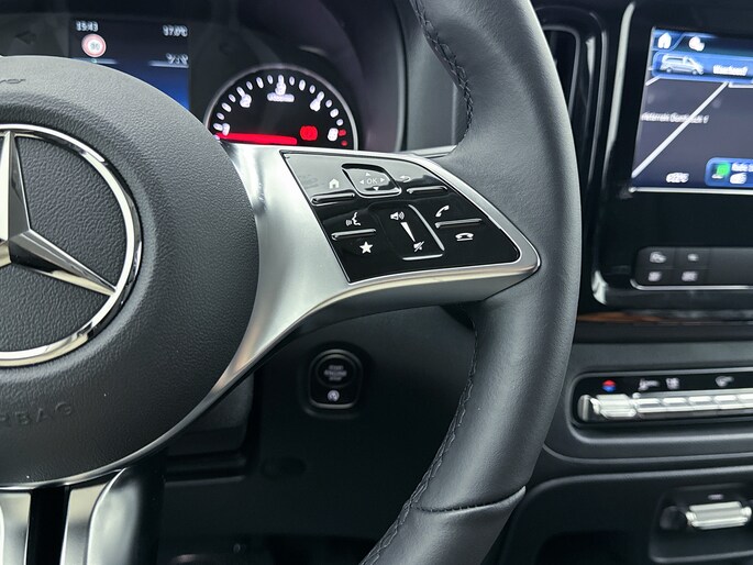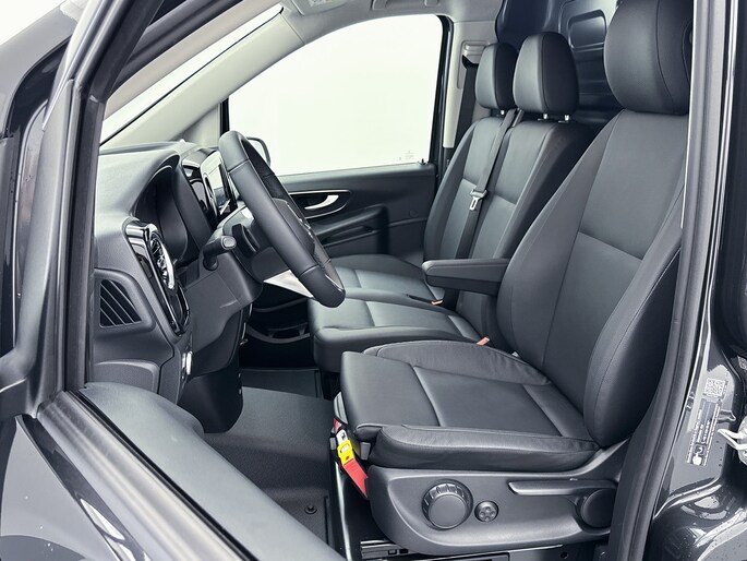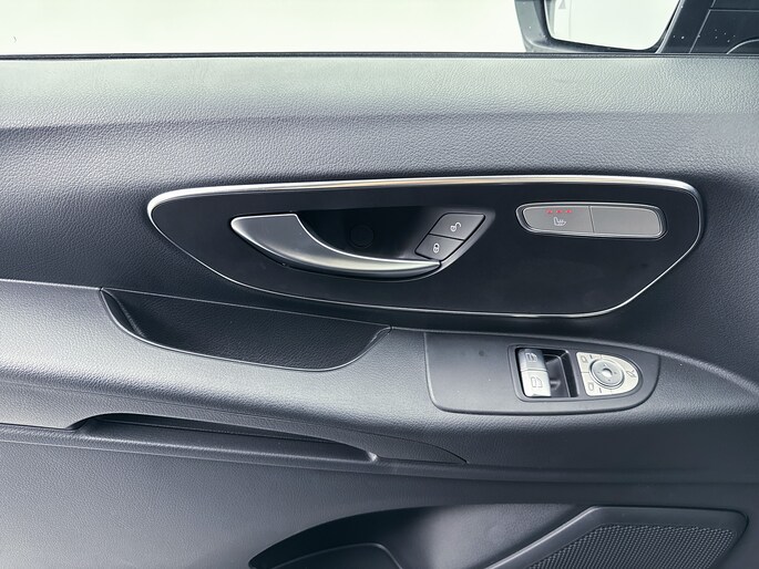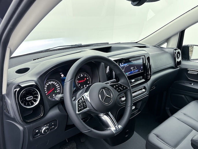 Het exterieur kenmerkt zich door metallic lak, LED-achterlichten, chroomaccenten en elektrisch inklapbare, verstelbare en verwarmbare buitenspiegels met verlichting. Binnenin biedt de Vito een comfortabele werkomgeving met een multifunctioneel stuurwiel, verstelbare comfortstoelen met lendesteun en een volledig digitaal instrumentenpaneel.