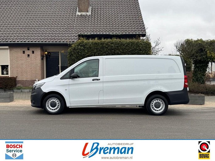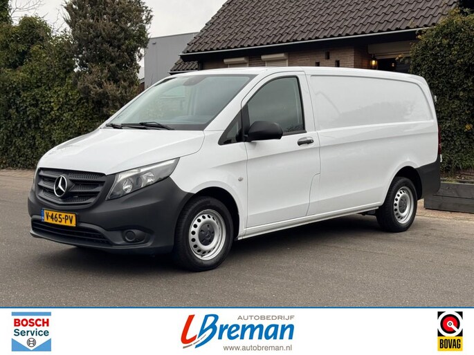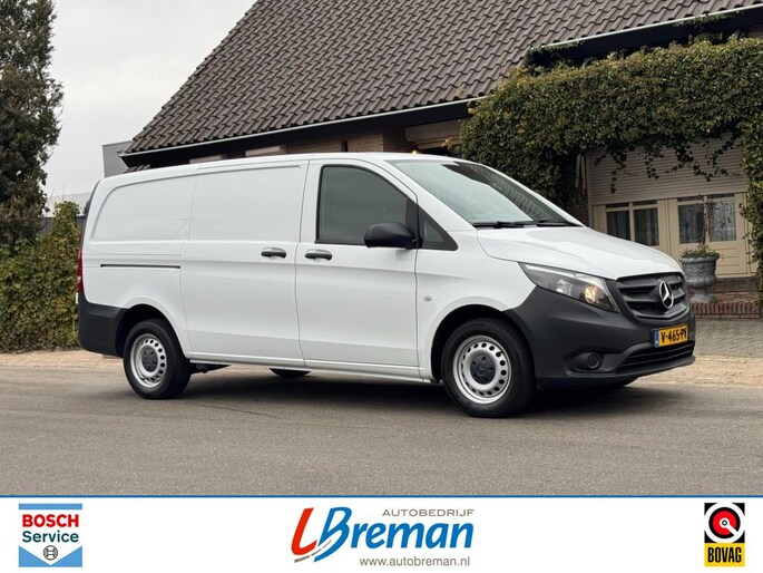 Zeer mooie Vito met o.a.: Climate control, cruise control, multifunctioneel stuurwiel met schakelpeddels, radio, bleutooth, elektrische ramen en spiegels, bijrijdersstoel, vloer in laadruimte, Autobedrijf Breman Bosch Car Service dealer, uw adres voor levering van alle merken nieuw (met behoud fabrieksgarantie) en gebruikt, onderhoud reparatie alle merken personen- en bedrijfsauto's, aanhangwagens. Diverse Autotrust garantiemogelijkheden keuze uit 6, 12 of 24 maanden garantie, informeer naar de mogelijkheden en voorwaarden . Kijk voor meer info op www.autobreman.nl of www.autobedrijfbreman.nl. Openingstijden, maandag t m vrijdag van 09.00uur tot 18.00uur en zaterdag van 09.00uur tot 12.00uur. Zon- en feestdagen altijd gesloten.Voertuig is exclusief BTW geadverteerd.