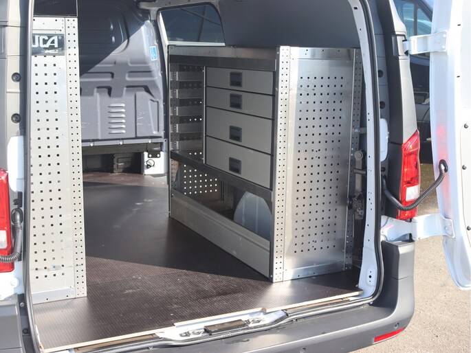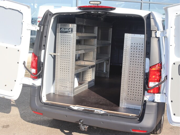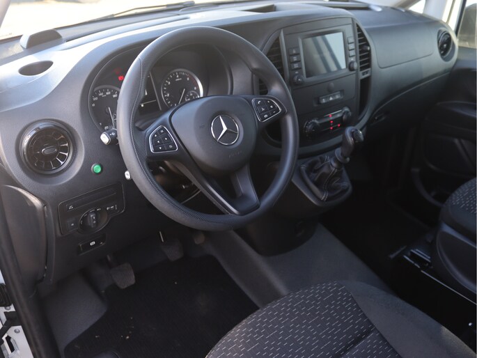 De Vito is o.a. uitgerust met airco, navigatie, achteruitrijcamera, parkeersensoren voor en achter, cruise control, trekhaak en volledige laadruimte betimmering.