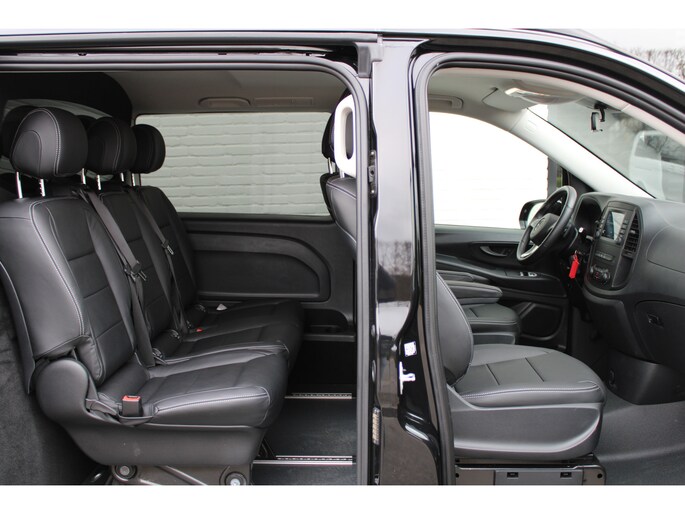 Een hele fijne occasion, deze Mercedes-Benz Vito. Klasse in uitvoering, perfect in conditie en met een voorbeeldige kilometerstand. Uw aandacht meer dan waard! Deze dealeronderhouden auto is van het bouwjaar 2023 en komt van de eerste eigenaar. De aandrijving van deze Mercedes-Benz wordt verzorgd door een viercilinder dieselmotor en een automatische transmissie. Stijl en comfort krijg je erbij in de vorm van een fraai lederen interieur. Ervaar de weldadige warmte van de inschakelbare stoelverwarming. Met de krachtige xenonverlichting rijdt u ontspannen in het donker. Zelfs bij weinig parkeerruimte krijgen passagiers via de schuifdeur voldoende mogelijkheid om in en uit te stappen. Ook is de auto voorzien van: LED koplampen, warmtewerend glas, trailer assistent, aluminium dakrailing, elektrisch inklapbare buitenspiegels en LED-achterlichten.