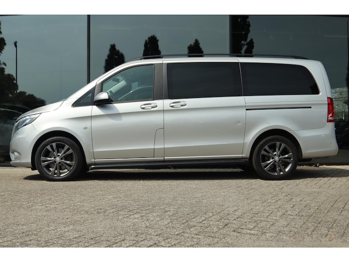 Vito 119 CDI Automaat 2.2 CDI 190 PK motor, de meest krachtige Vito motor, Lang L2H1, Euro 6 emissienorm, de hoogst haalbare, 2 schuifdeuren, Bumpers en buitenspiegels in carrosseriekleur, LED Intelligent Light koplampen, LED achterlichten, Trekhaak met 2500 kg trekgewicht op kenteken, Zwarte sidebars, Climate control met links/rechts gescheiden temperatuur, Stoelverwarming links + rechters, Privacy glass en glasslook panelen, Mistlampen, Alarm klasse 3 vanaf fabriek, Parkeersensoren voor + achter origineel vanaf fabriek met LED displays, Dakrailing, Navigatie, Bluetooth met audiostreaming, Leder stuurwiel multifunctioneel, Elektrische lendesteun, Chromen grille, Dubbele airbag, Prijs is exclusief BTW.