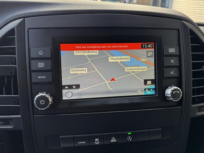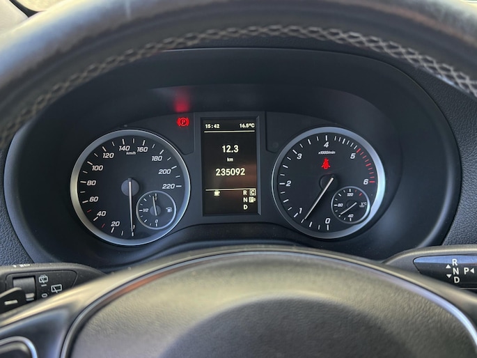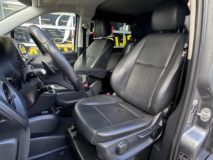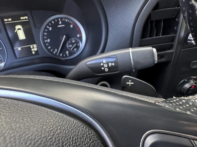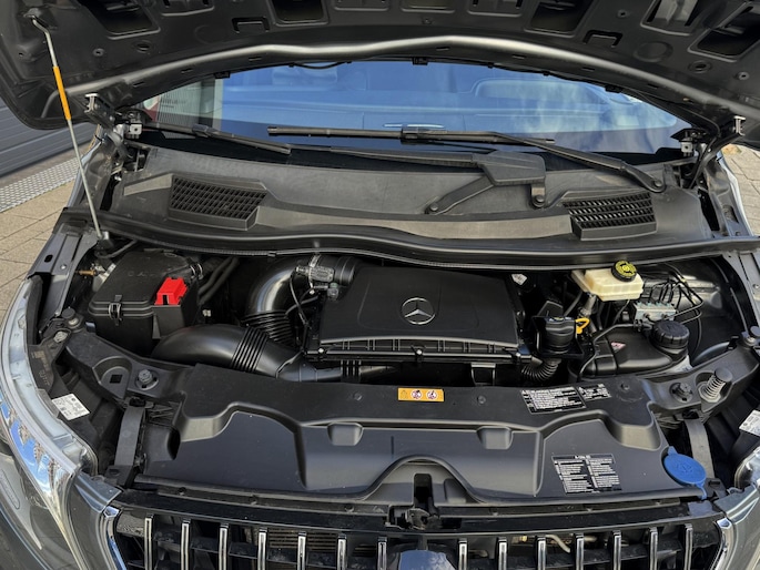 Binnenin ervaart u het comfort dat u van Mercedes mag verwachten: verwarmde stoelen, automatische airconditioning, een navigatiesysteem en een multifunctioneel stuur waarmee u alles eenvoudig bedient. De elektrische schuifdeur zorgt voor extra gemak bij het in- en uitstappen, zelfs op krappe parkeerplekken. Ook aan praktisch gebruik is gedacht met onder meer warmtewerend glas, bekerhouders, cruise control, en een achteruitrijcamera die parkeren kinderspel maakt.