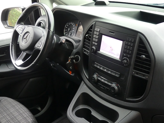 Zeer nette en keurig onderhouden Mercedes Vito 114 CDI Lang dubbel cabine automaat afkomstig van de 1ste eigenaar en een trekgewicht van 2500KG. U kunt ons bereiken op nummer 0317-358830 of op 06-41383399. Deze Vito is o.a. voorzien van climate control, cruise control, navigatie, achteruitrijcamera, regen en lichtsensor, led verlichting, bumpers in carrosseriekleur, parkeersensoren voor en achter, lichtmetalen velgen, side bars, multifunctioneel stuurwiel, middenarmsteun, dakrailing, elektrische ramen, elektrisch verstelbare en inklapbare spiegels ect ect. Onderhoudshistorie en nationale autopas aanwezig. Inruil mogelijk. Bezichtiging op afspraak. Kosten rijklaarmaken € 495,-