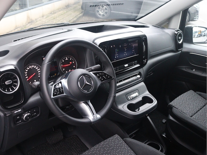 De Vito is o.a. voorzien van airco, achteruitrijcamera, parkeersensoren voor en achter, MBUX multimediasysteem met Apple CarPlay en Android Auto, cruise control, trekhaak met 2.500 kg trekgewicht en volledige laadruimte betimmering.