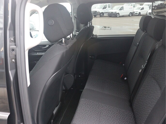 De Vito is o.a. voorzien van airco, achteruitrijcamera, parkeersensoren voor en achter, MBUX multimediasysteem met Apple CarPlay en Android Auto, cruise control, trekhaak met 2.500 kg trekgewicht en volledige laadruimte betimmering.