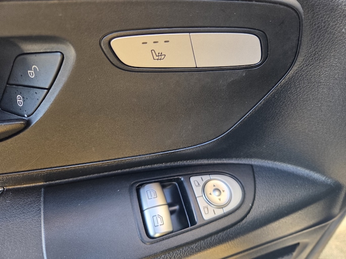 Kijk naar de geraffineerde lijnen. Verbaas u over de soepele aandrijftechniek. De elektrische Mercedes-Benz eVito trakteert u op een onvergelijkbare rijervaring. Nooit meer naar de pomp! De elektromotor opladen en rijden maar! Dankzij de stoelverwarming heeft u in deze auto nooit meer last van een koude rug of koude benen. Openwaaiende portieren kunnen gevaar opleveren. Daarom is de schuifdeur voor passagiers extra handig en veilig. Bij de rijke uitrusting horen ook warmte werend glas, metallic lak, elektrisch bedienbare ramen voor en elektrisch bedienbare en verwarmde buitenspiegels.