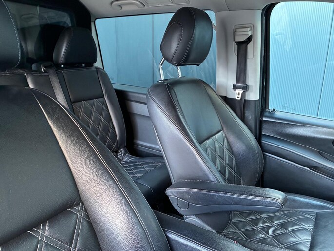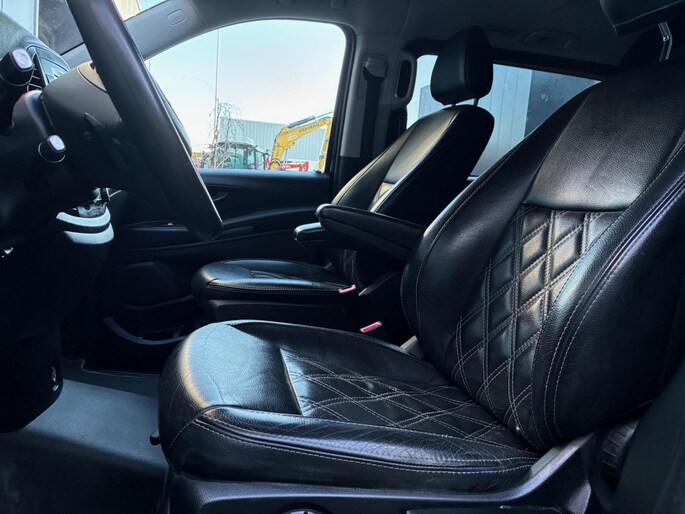 Fraaie Mercedes Vito 116 CDI Automaat met dubbele cabine. Luxe bus met lederen bekleding, apple carplay android auto, climate control, parkeersensoren rondom, schadevrije 19" lichtmetalen wielen en nog veel meer! Recentelijk grote beurt gehad. Deze bus is rijklaar, dus geen extra (aflever)kosten. Financieren behoort tot de mogelijkheden. Prijs is ex btw. Belangstelling? Bel ons en we leggen de sleutels klaar voor een proefrondje.