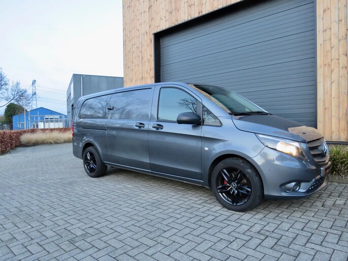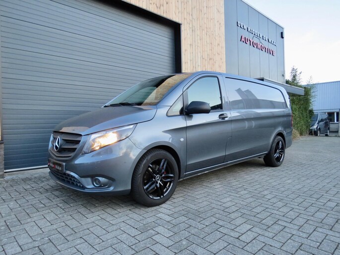 Nette Mercedes Vito 116 CdI extra lang L3 grijs. Btw auto met veel opties zoals: Airco, cruisecontrol, stuuropties, multimedia, trekhaak, automatisch inparkeren, pdc voor en achter, laadruimte betimmerd en netjes, midden armsteun, led verlichting achterin,