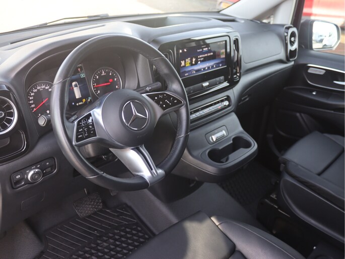 De Vito is o.a. voorzien van airco, 10,25" MBUX multimediasysteem met Apple CarPlay en Android Auto, achteruitrijcamera, cruise control, MULTIBEAM LED koplampen, trekhaak met 2.500 kg trekgewicht, comfort bestuurdersstoel, kunstlederen bekleding en laadruimtebetimmering met een houten laadvloer.