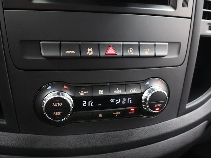De nieuwste veiligheidssystemen komen in deze Mercedes-Benz Vito samen. Op lange ritten voorkomt de vermoeidheidsassistent dat uw concentratie afneemt. Dankzij veiligheidsvoorzieningen als dodehoekdetectie en bandenspanningcontrolesysteem, bent u steeds veilig onderweg.